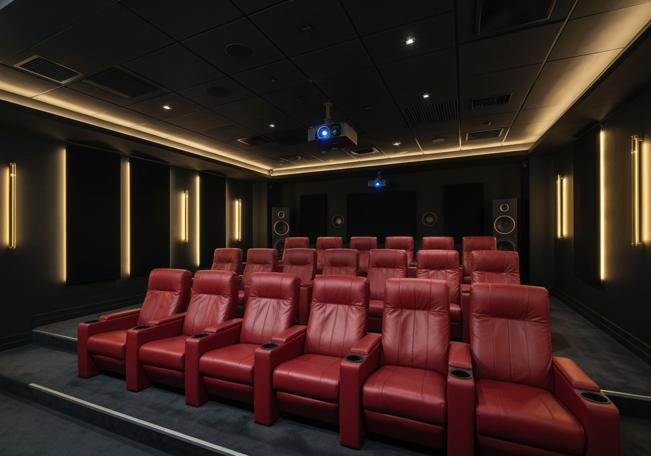 Dedicated home theatres with acoustics-first design and calibrated Dolby Atmos. Cinema-grade performance without visual clutter.