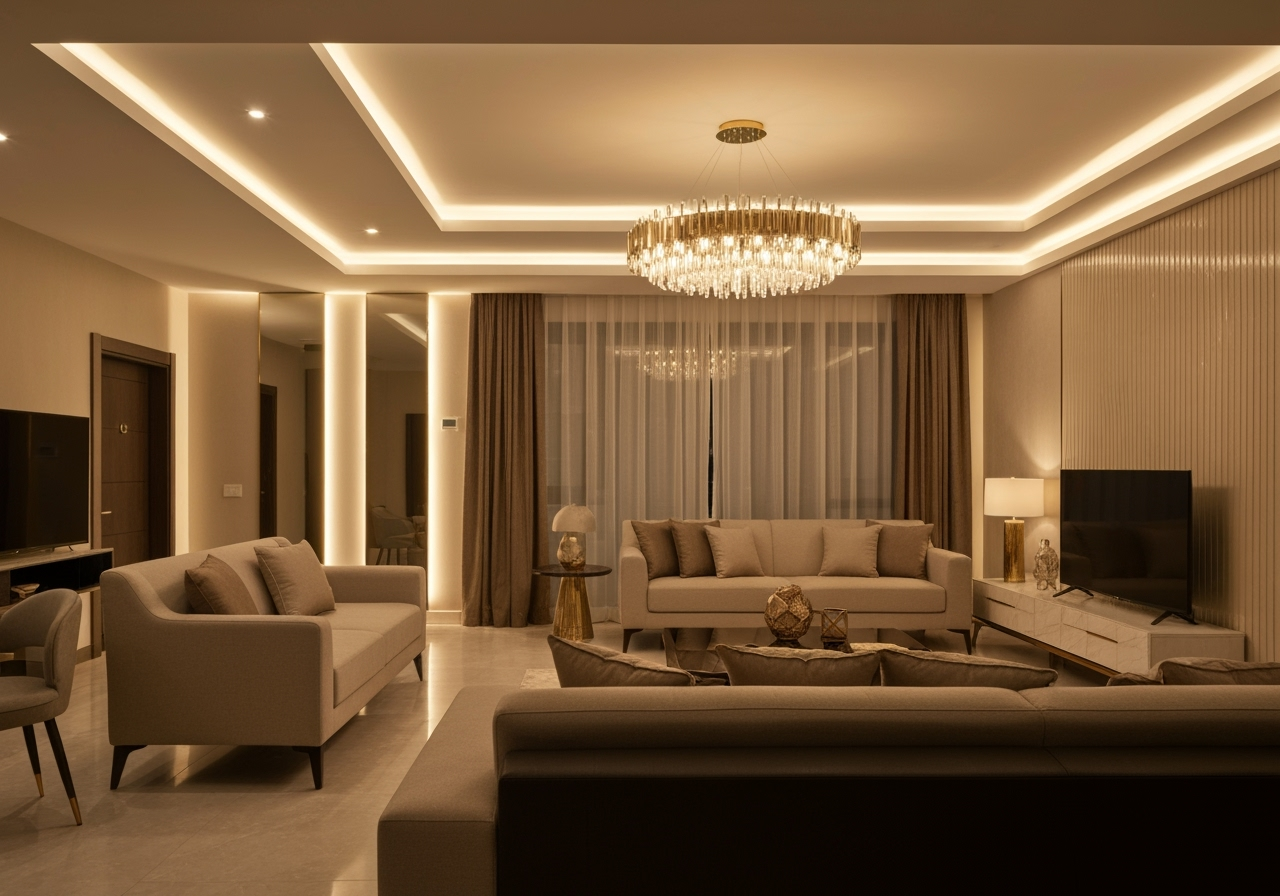 Multi-layer lighting schemes with lux-level calculations, glare control, and optics-first fixture selection for every mood.